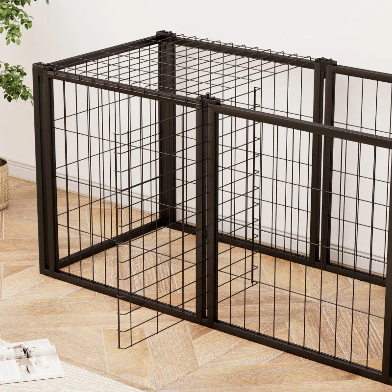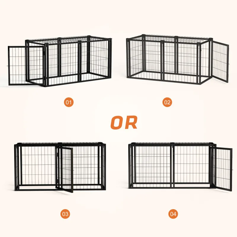 Safe top cover and flexible door placement: The dog cage has a safe top cover that can effectively prevent your pet from escaping. You can open it and play with the dog, or you can lock it directly. In addition, it provides the flexibility to install doors at any desired location, allowing you to customize access points based on the layout of your home or the specific needs of your pets.