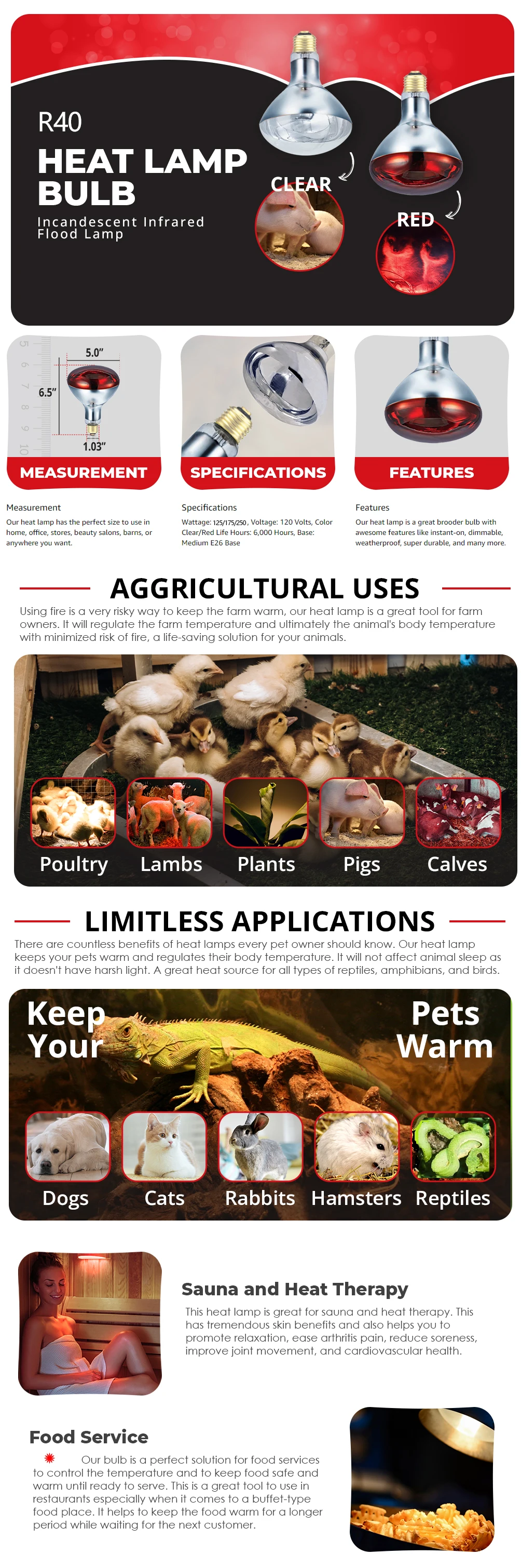 5. It is mainly used for animal husbandry, farm, pig raising, chicken raising or other livestock,It can also be used for food insulation and physiotherapy providing you with wonderful user experience.