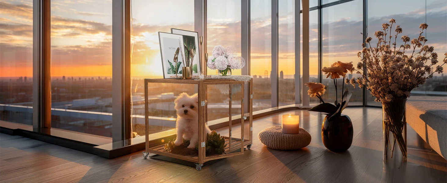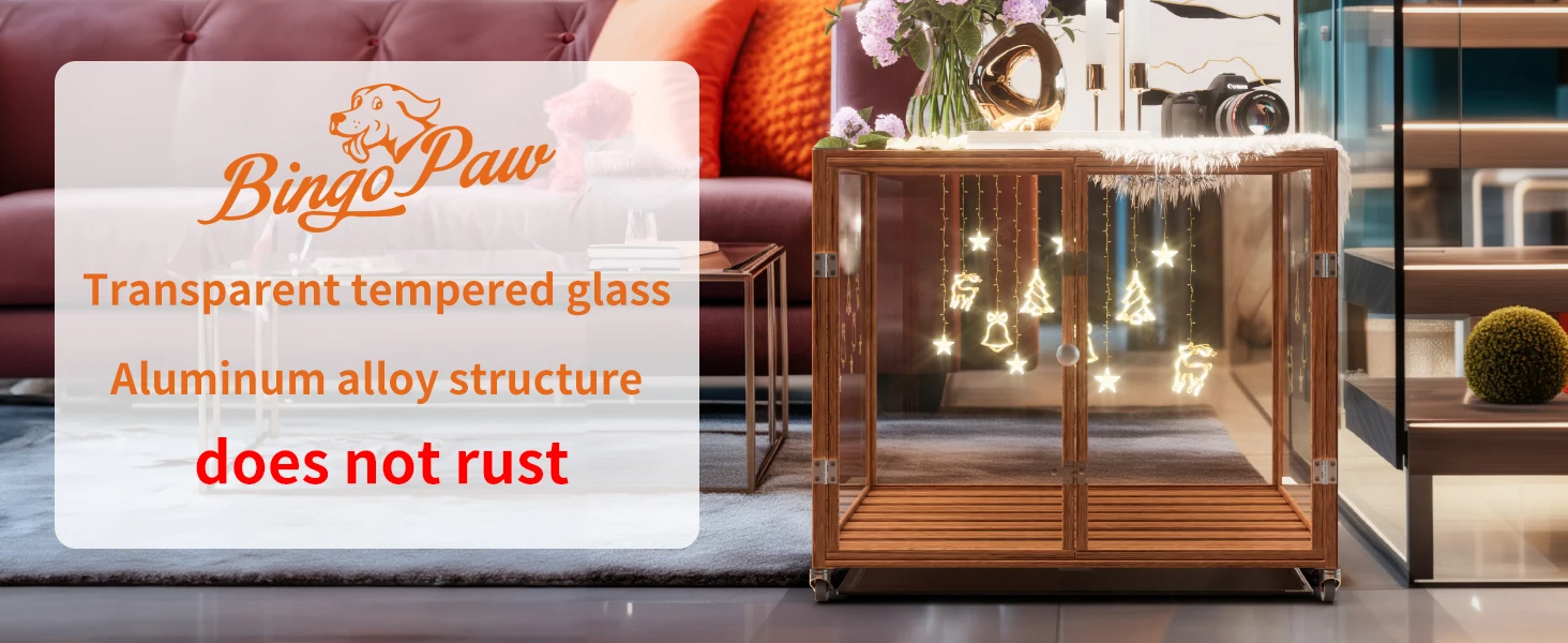 Have you seen such a transparent cage for dogs on the market? This is an innovative design from Bingopaw team. Unlike traditional pet cages, this cage features a strong tempered glass and aluminum frame combination, which will be a unique design on the market. Transparent surface for you can see your pets all the time, while the aluminum frame won’t rust or break, which ensures safety and durability. Then, it has a removable tray for ease of cleaning, while spacious enough for pets to move around and stay.