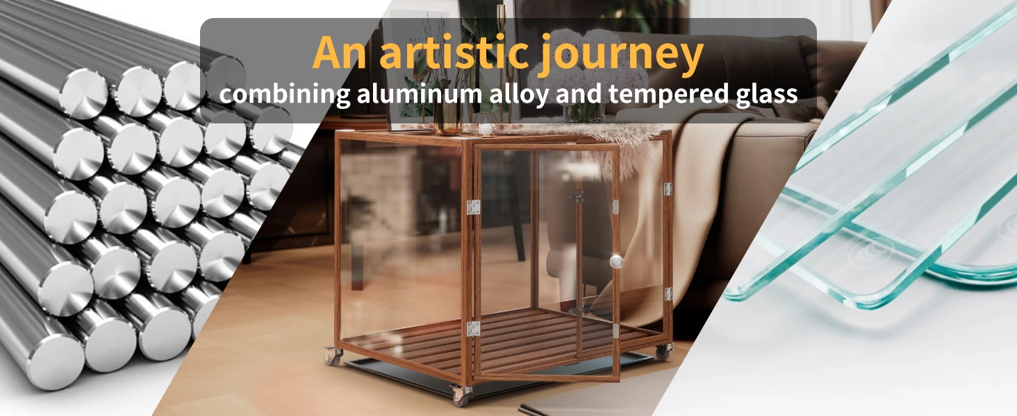 Self-Innovative Dog Cage: First Tempered Glass Dog Cage Aluminum Frame with Dual Doors and Wheels